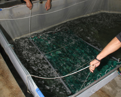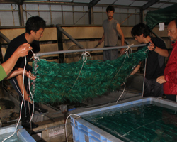 反复用优秀亲鲤来繁殖。这次由于规模扩张,放养了1200万条毛仔。