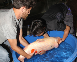 今年首次尝试锦鲤人工授精。