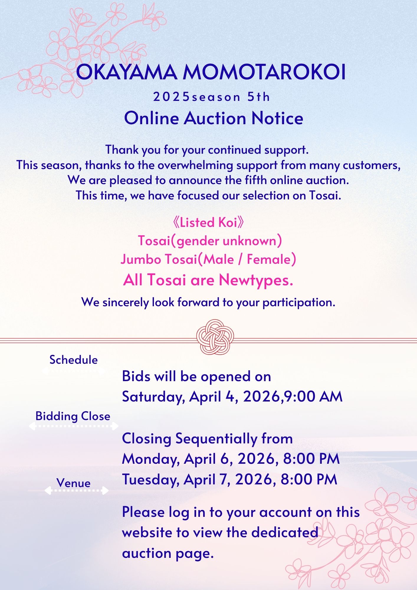 Please wait a little longer for the list of auction koi.
